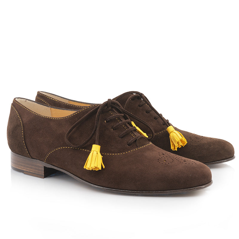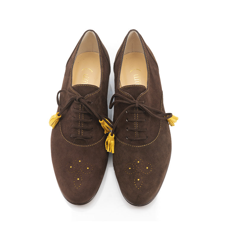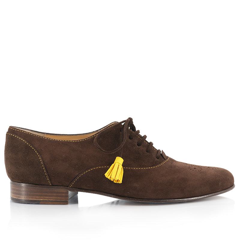 Lacets en cuir terminés par des pampilles en agneau de couleur contrastée, assortie aux coutures et perforations.