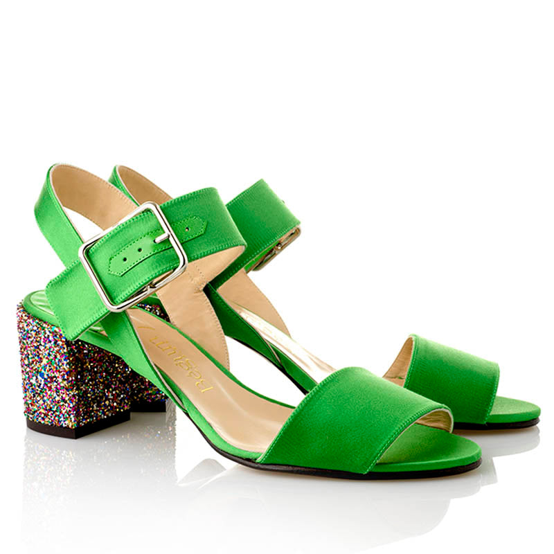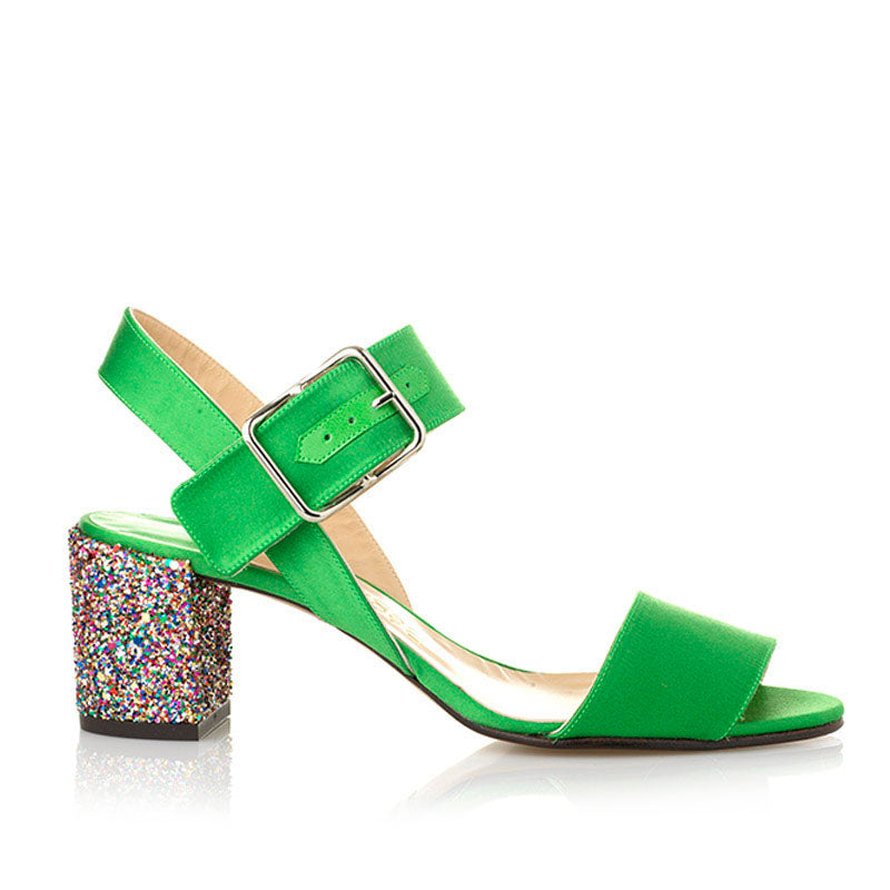 Une sandale en satin de couleur vive pour un style à la fois pop et glamour.