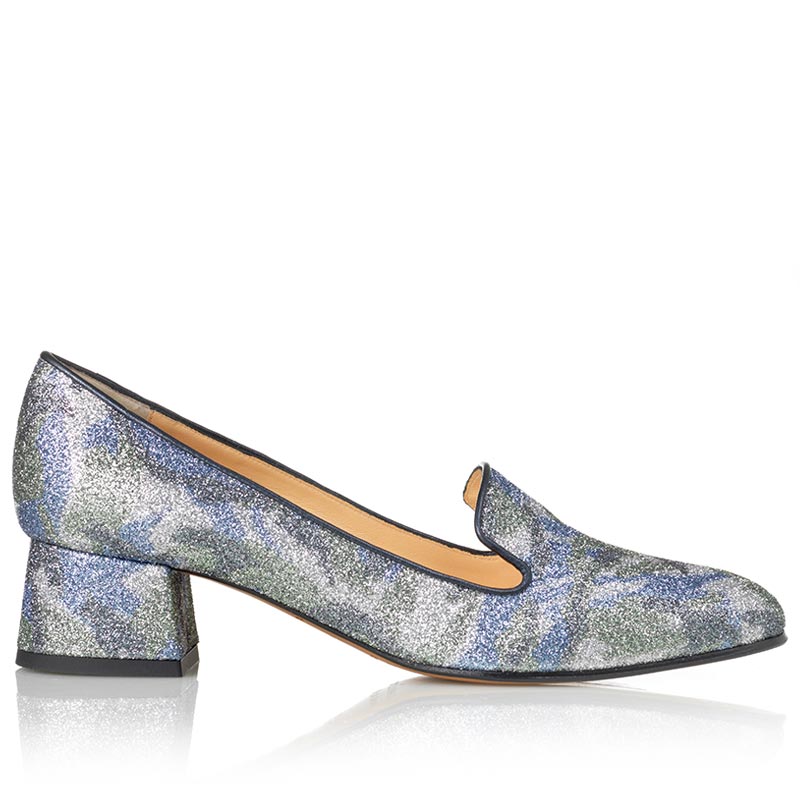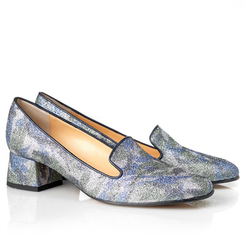 Un slipper à paillettes camouflage, à la fois classique et moderne.