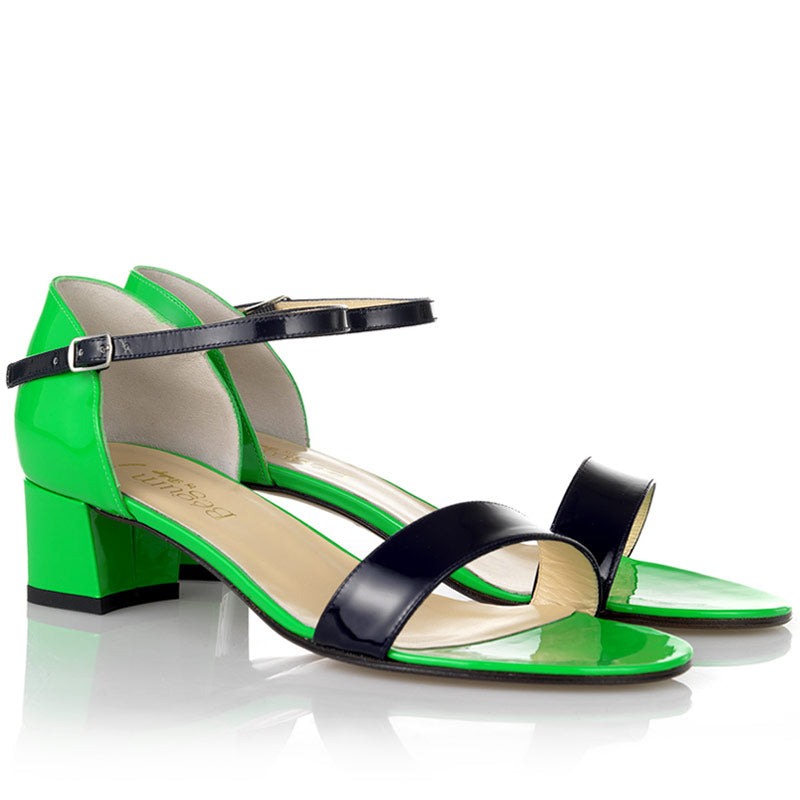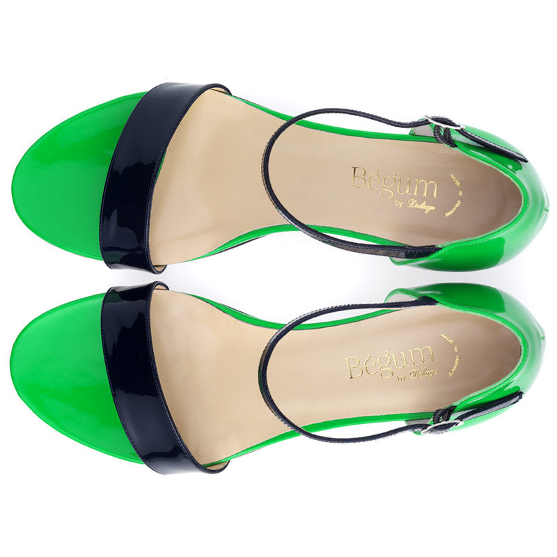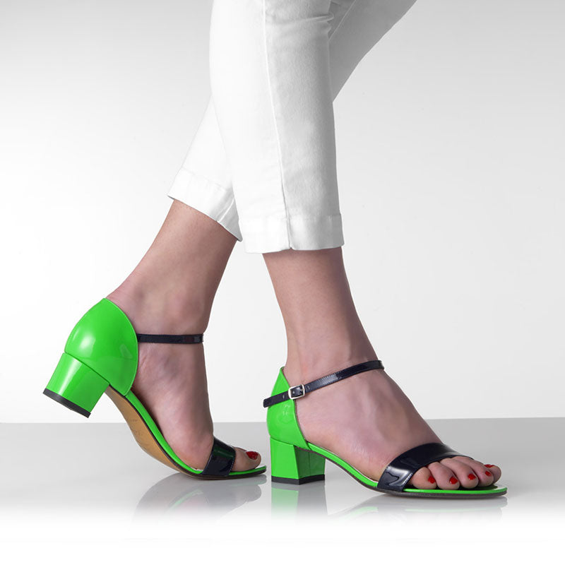 Une élégante sandale bicolore à petit talon, parfaite pour parader en ville avec ses coloris pop !