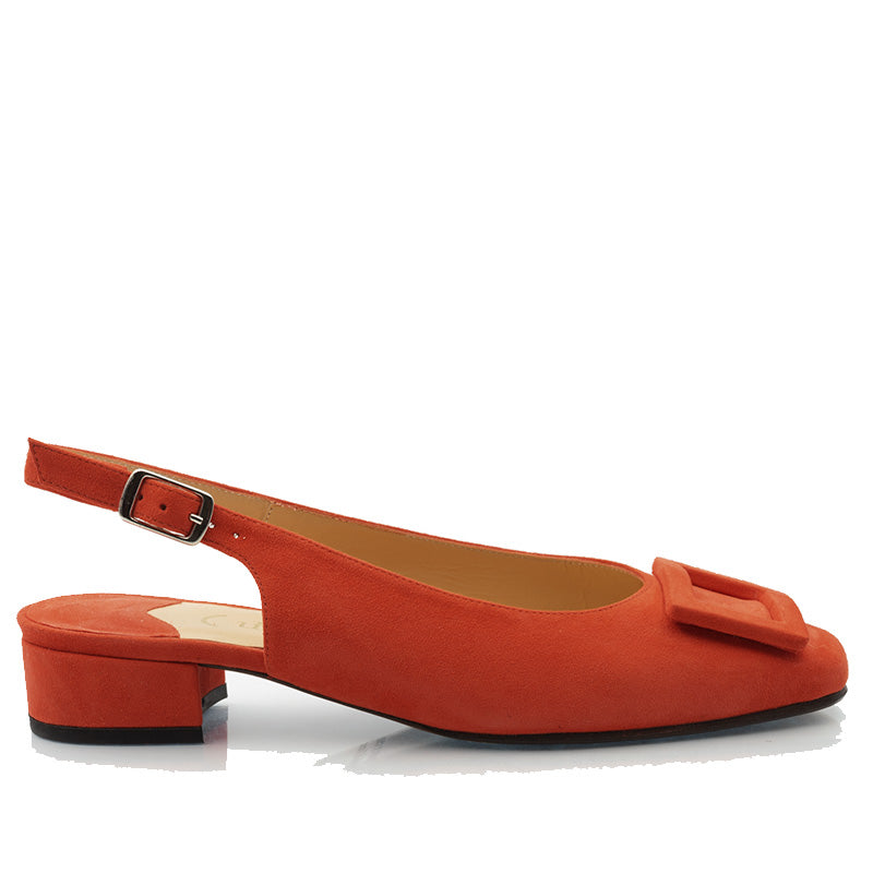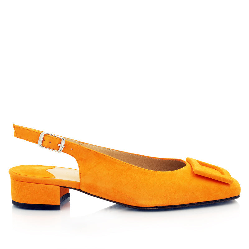 La variante slingback de notre modèle Georgina. Ce classique soulier à boucle se porte partout, avec tout, et tout le temps.