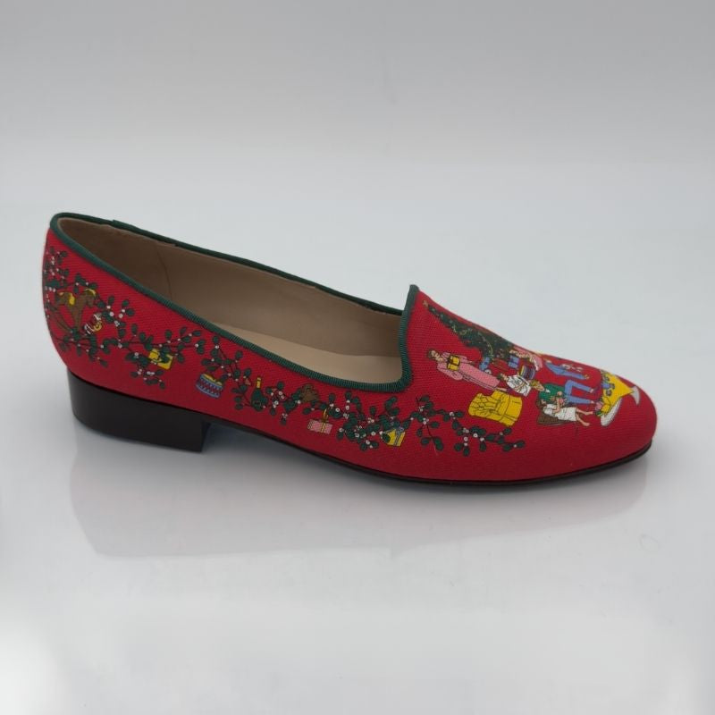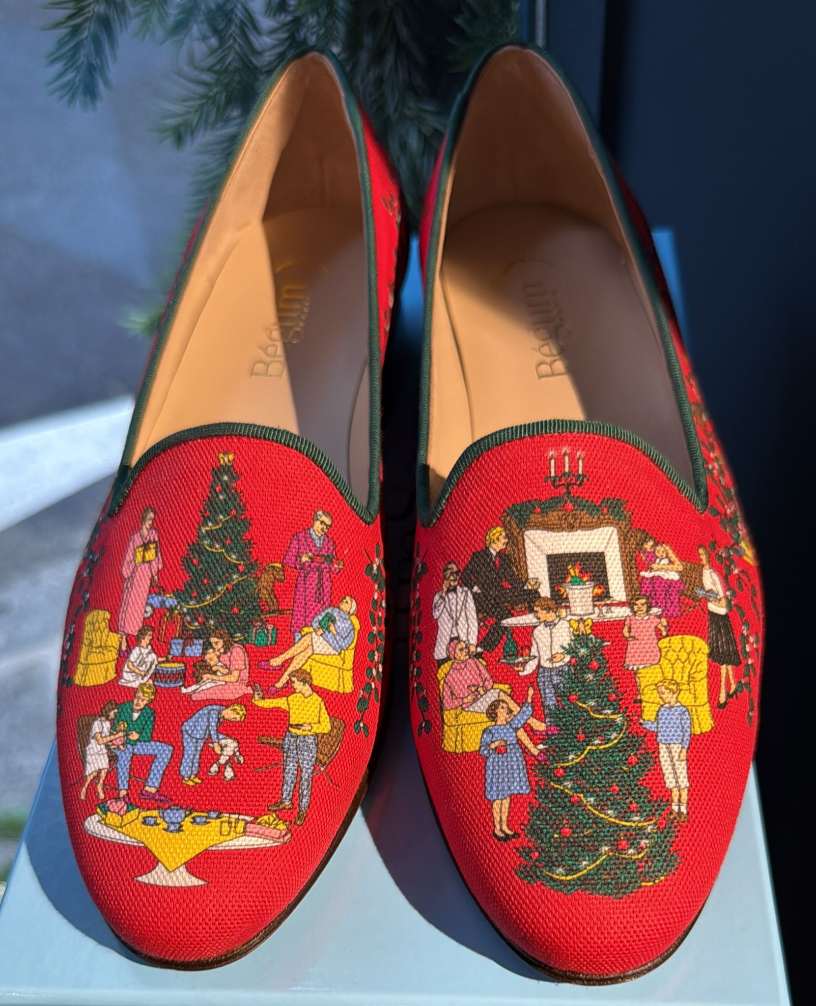 Ce slipper de Noël présente une création originale de Sophie Duf.